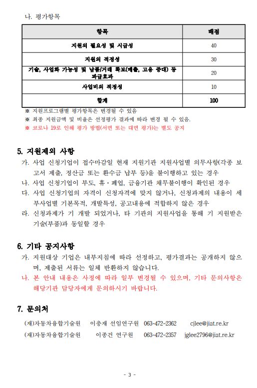 (자동차융합기술원) 자사제품 확보를 위한 사업다각화 기술개발 및 고급화 지원과제 공고