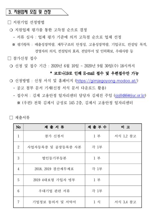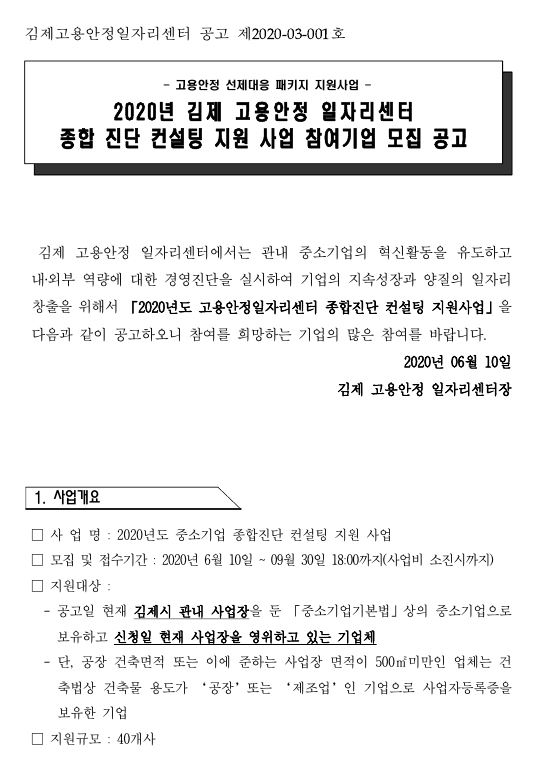 2020년 김제 고용안정 일자리센터 종합진단 컨설팅 지원사업 참여기업 모집 공고