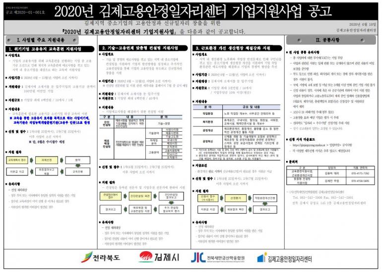 2020년 김제 고용안정 일자리센터 근로환경개선 생산현장 체질강화 지원사업