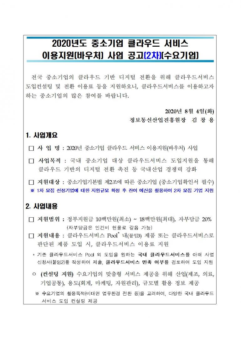 (한국표준협회) 2020년도 중소기업 클라우드 서비스 이용지원(바우처) 사업 공고