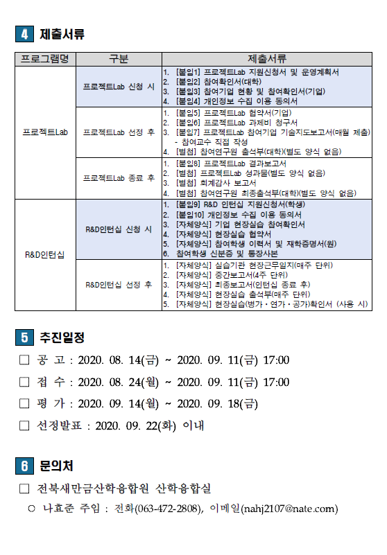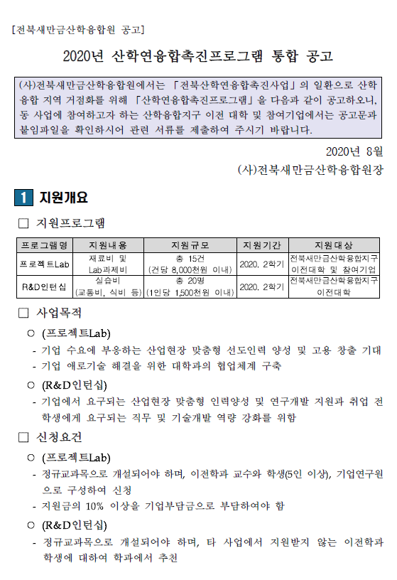 2020년 산학연융합촉진프로그램(프로젝트Lab, R&D인턴십 2차 공고