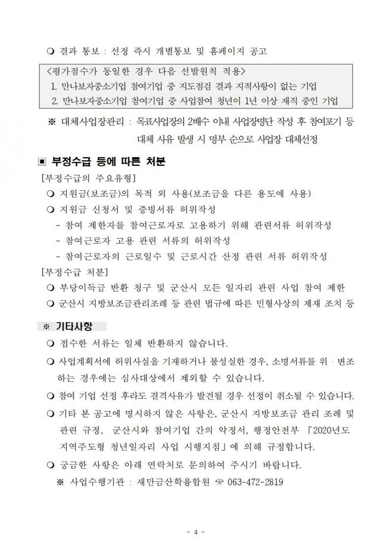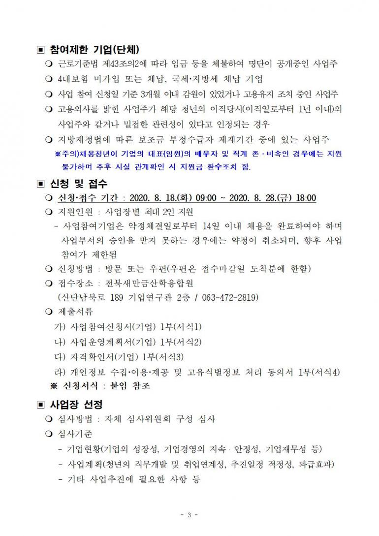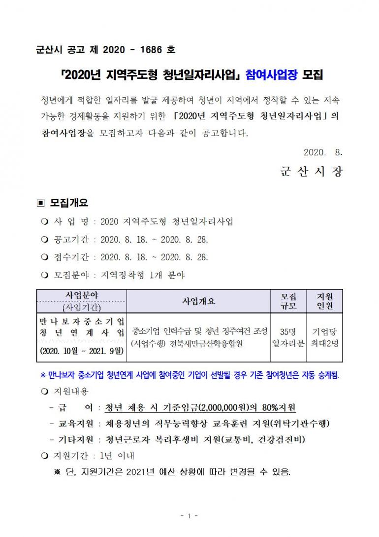 「2020년 지역주도형 청년일자리사업」 참여사업장 모집