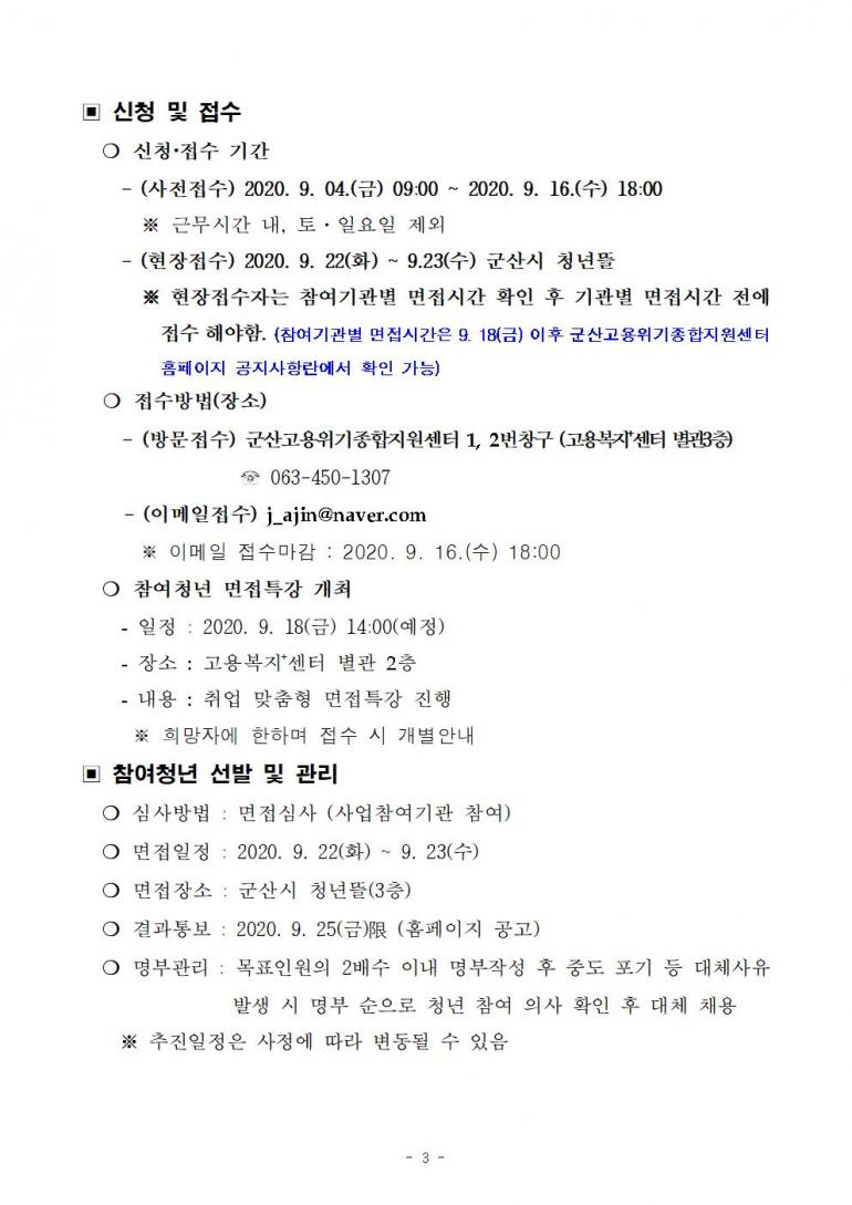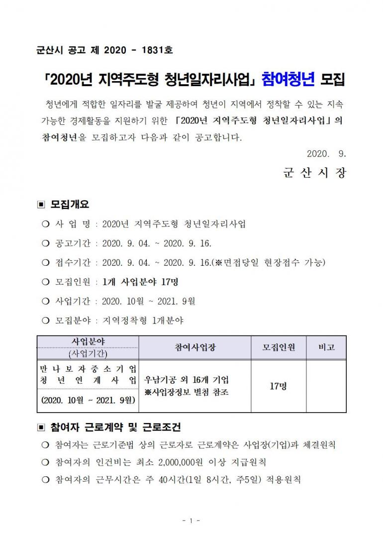 「2020년 지역주도형 청년일자리사업」 참여청년 모집