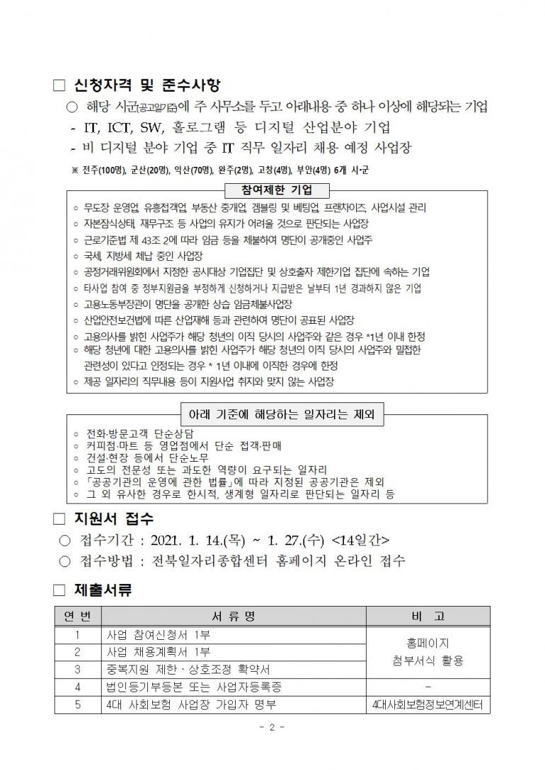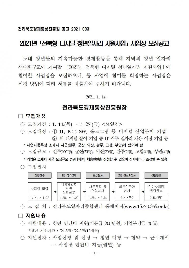 2021년 「전북형 디지털 청년일자리 지원사업」 사업장 모집공고