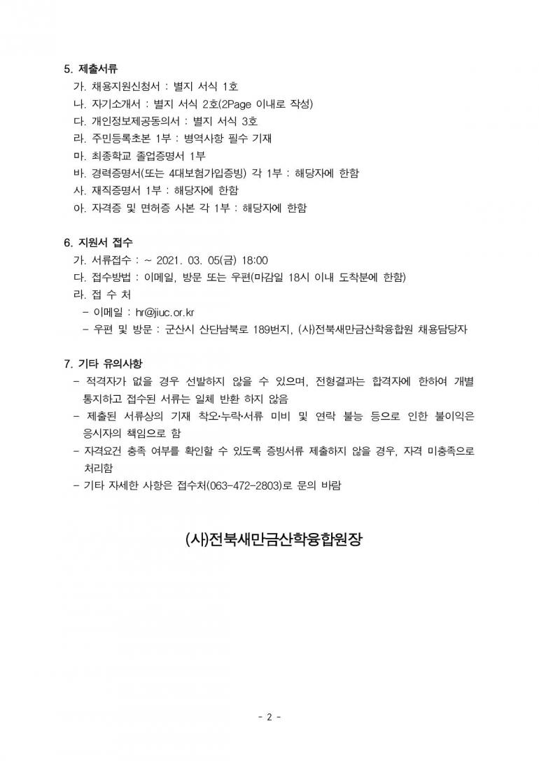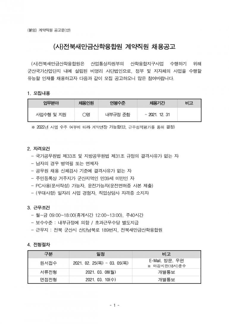 전북새만금산학융합원 계약직원 채용공고(접수종료)