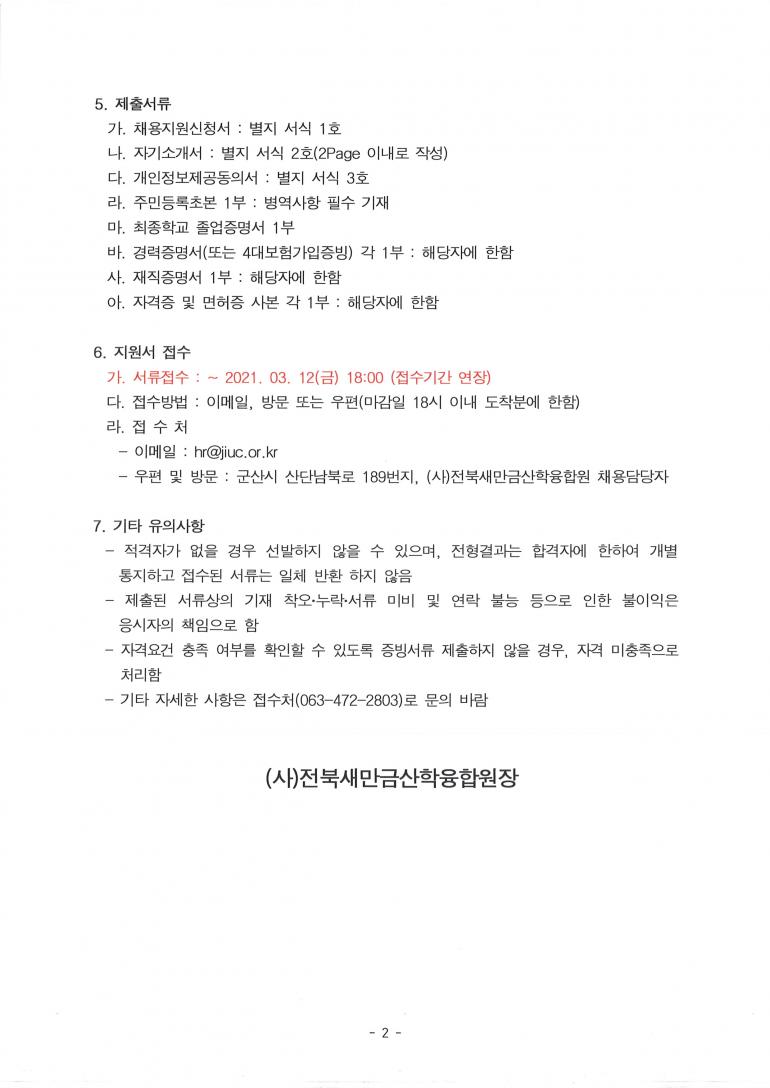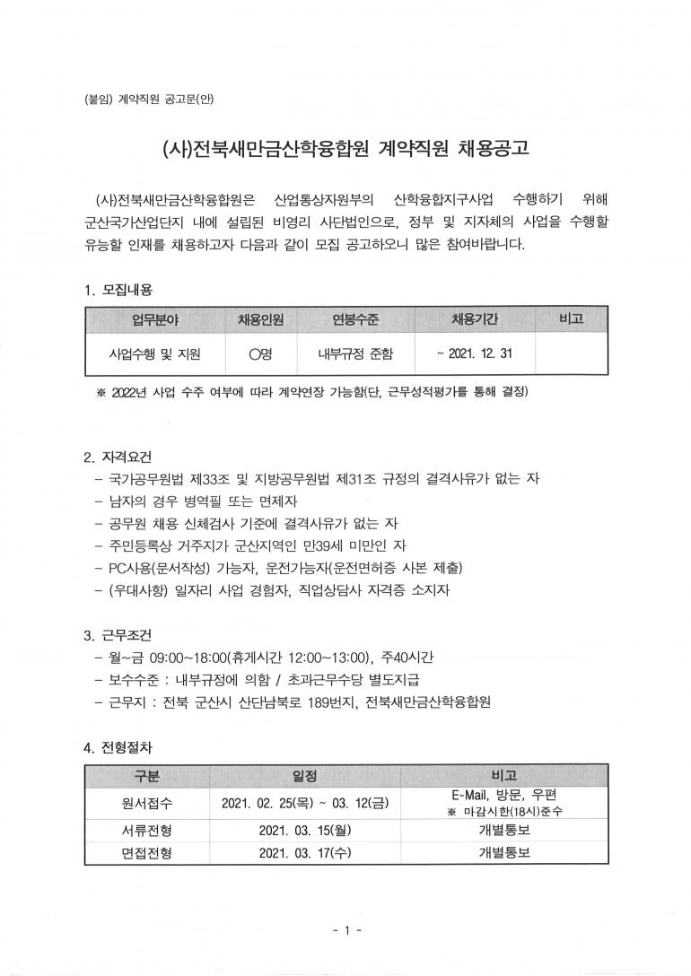 전북새만금산학융합원 계약직원 채용공고 접수기간 연장(접수종료)