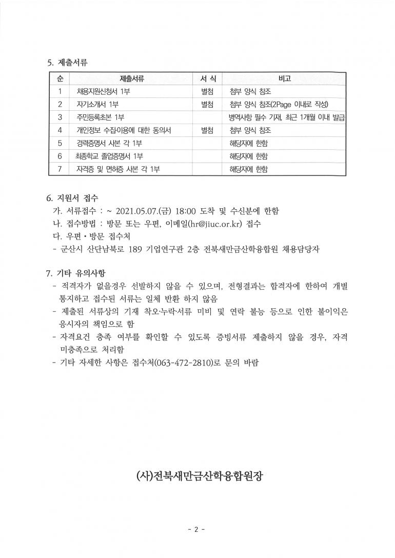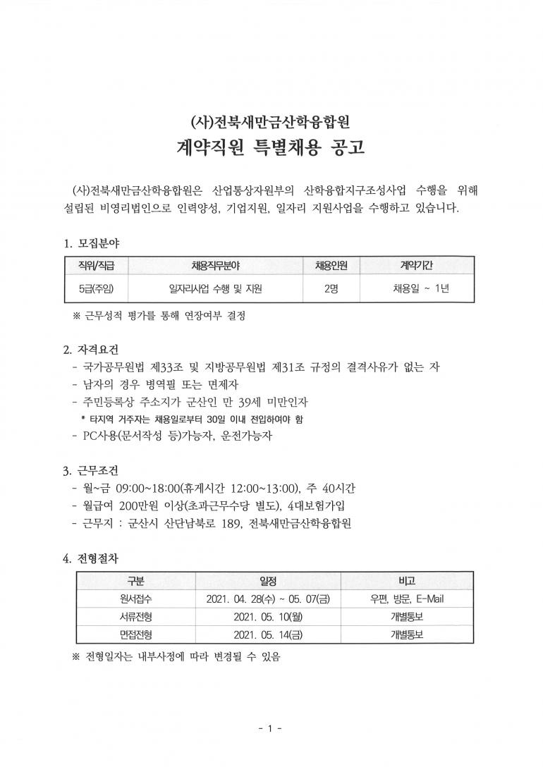 (사)전북새만금산학융합원 계약직원 특별채용 공고(접수종료)