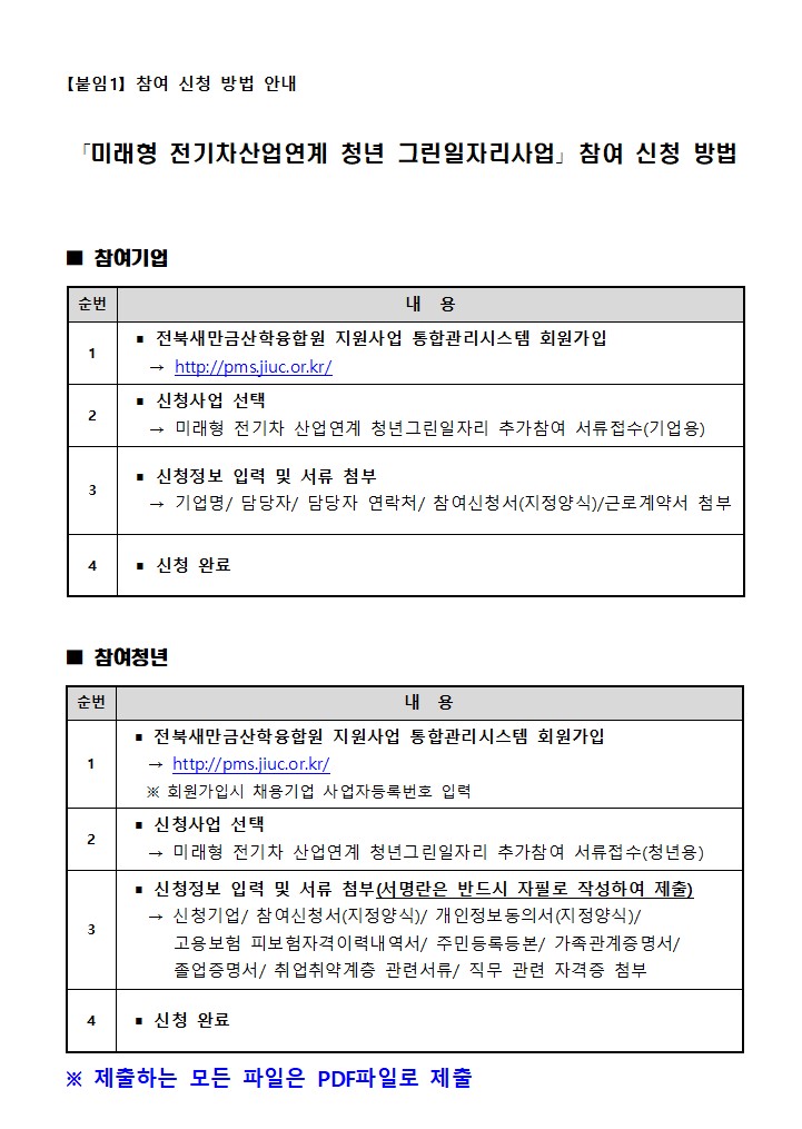 2021년 「미래형전기차산업연계 청년 그린일자리사업」 참여기업 8월 추가모집 공고