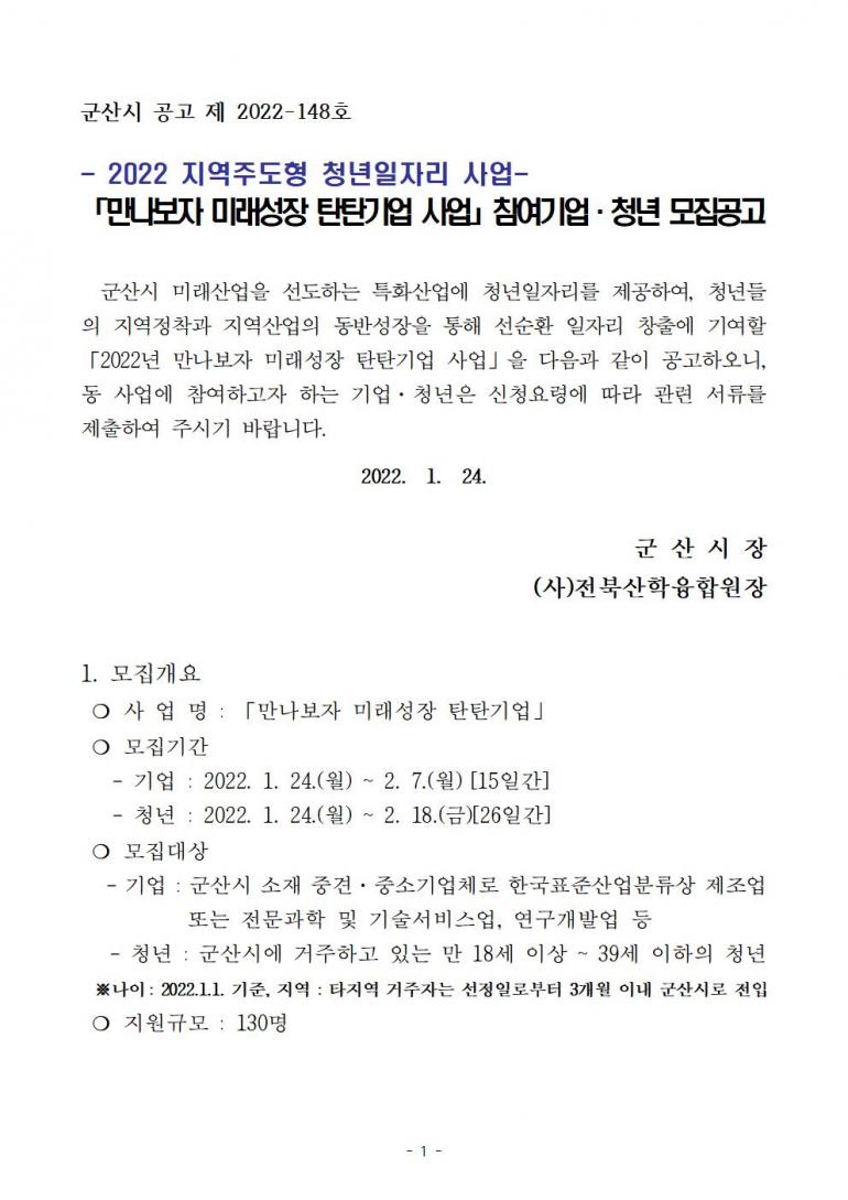 「만나보자 미래성장 탄탄기업 사업」 참여기업ㆍ청년 모집공고