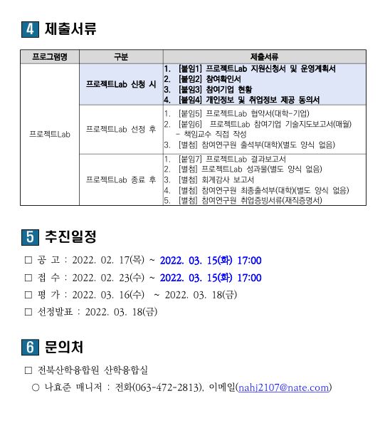 2022년 산학융합 프로그램(프로젝트Lab) 연장 공고
