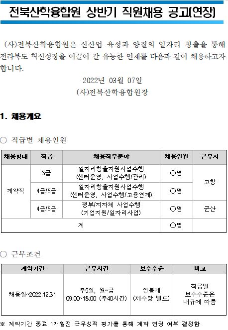 전북산학융합원 상반기 직원채용공고(연장종료)
