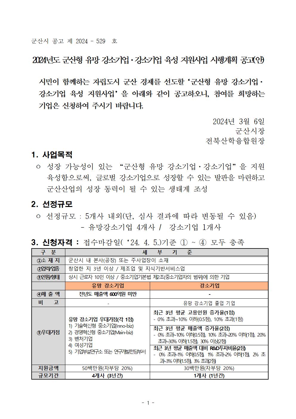 (공고문) 2024년 군산형 유망 강소기업·강소기업 육성 지원사업.hwp